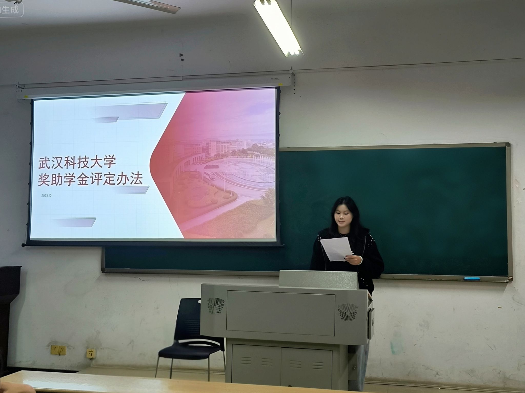 武科大网讯(通讯员刘博洋)为帮助学生深入了解我们奖助学金政策,切实保障学生权益,10月14日晚,学院于42112教室开展2025级学生奖助学金评定政策宣讲会。本次宣讲会由2024级生活委员李婉怡主讲,2025级本科生全员参与。
