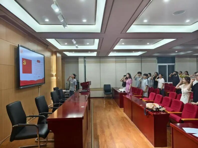 会议伊始,曾舒琪通报本月党员参会和支部党费缴纳情况,详细介绍此次活动的主题及流程,并带领全体党员重温入党誓词。
