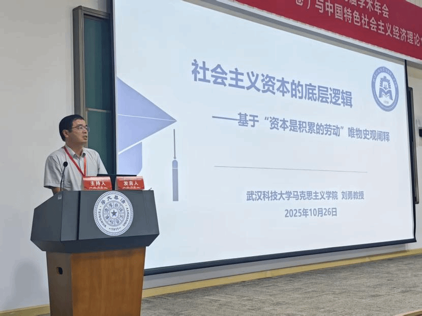 10月26日上午,我们副院长刘勇教授在大会作题为《社会主义资本的底层逻辑:基于“资本是积累的劳动”唯物史观阐释》的学术报告。刘勇教授以“资本来到世间,从头到脚,每个毛孔都滴着血和肮脏的东西”著名引述开篇,指出这一论断揭示了“资本主义资本”原始积累的特有本质。通过对《资本论》三卷的文本分析,刘勇教授梳理了马克思关于资本二重性的论述。在此基础上,刘勇教授结合张宇教授在《中国社会科学》2025年第8期发表的《社会主义市场经济条件下资本理论再认识》一文核心观点,以及恩格斯在《国民经济学批判大纲》中提出的“资本是积累的劳动”这一命题,深入分析了社会主义条件下资本的特殊性。他特别强调,在社会主义市场经济中,资本应当重新嵌入社会生产链条,回归其作为“积累的劳动”服务活劳动的本源职能。